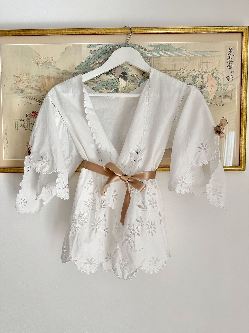 Liseuse antique en coton & broderie richelieu - T.M/XL